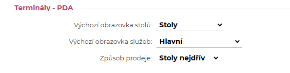 Na závěr je potřeba opět v sekci Další operace → Editovat hlavičku nastavit výchozí obrazovky pro terminály – PDA.