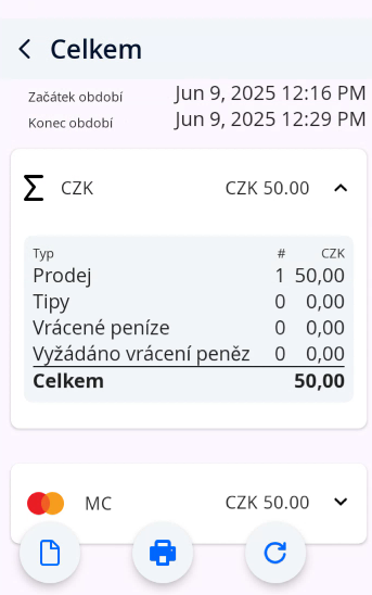 Pro zjištění celkové částky plateb uhrazených kartou postupujte takto: