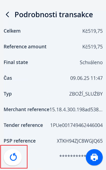 Otevřete její detail a zvolte možnost Refundace.