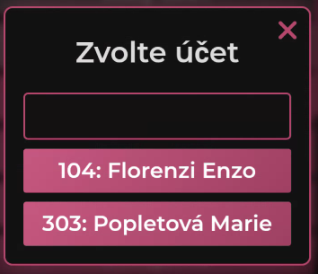 2. Následně vybereme, kam přesně chceme útratu v HotelTime odeslat – tedy zda na hlavní účet, účet bydlícího nebo na stálý účet: