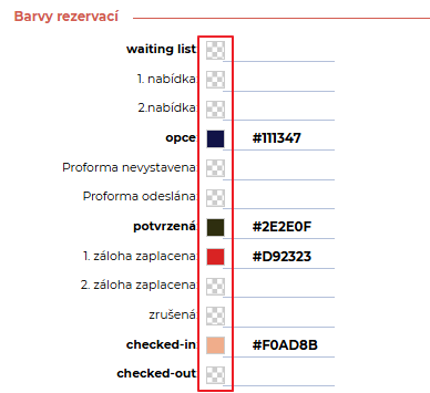 Nově je také možné nastavit barvy pro vaše vlastní stavy rezervace, které jste si nastavili.